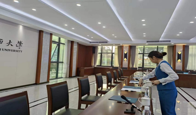 做好会场布置、会议前后保洁及会务各项服务共计27场,其中重要接待12场。