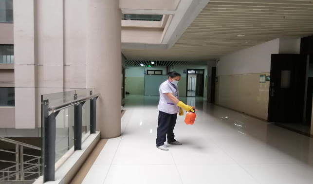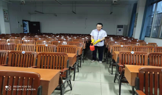 对公共教学楼宇的楼梯、走廊、门把手、课桌椅、电脑键盘、鼠标、水龙头、楼梯扶手、电梯间及按钮等高频接触表面进行重点杀菌消毒620次。
