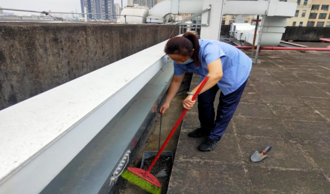 清理分析测试中心楼宇天台排水设施