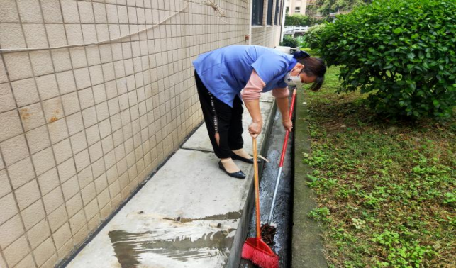 清理君武馆楼宇外围排水设施