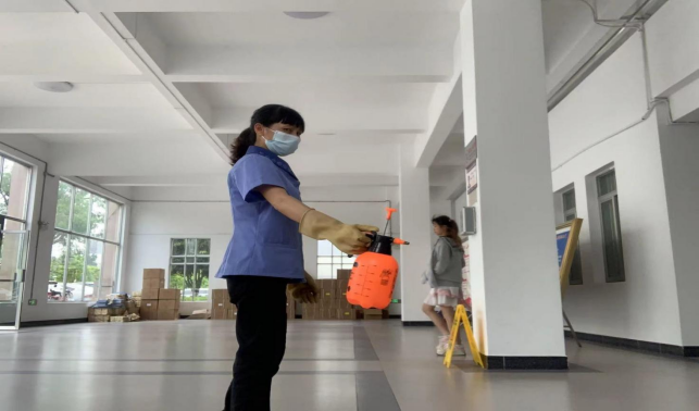 对公共教学楼宇的楼梯、走廊、门把手、课桌椅、电脑键盘、鼠标、水龙头、楼梯扶手、电梯间及按钮等高频接触表面进行重点杀菌消毒649次。