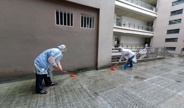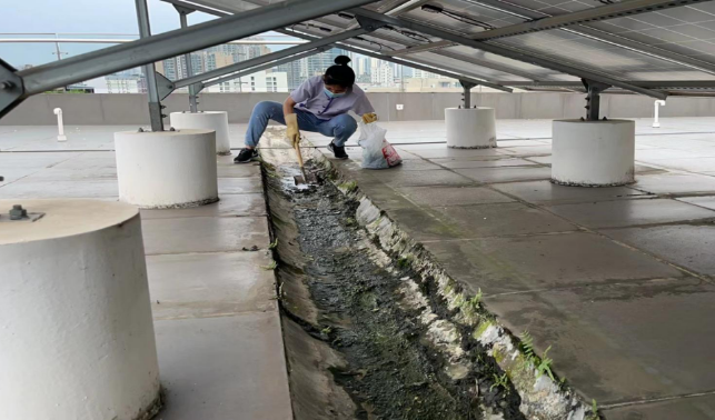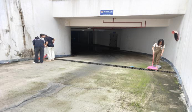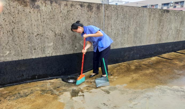 清理资环材学院楼宇天台排水设施