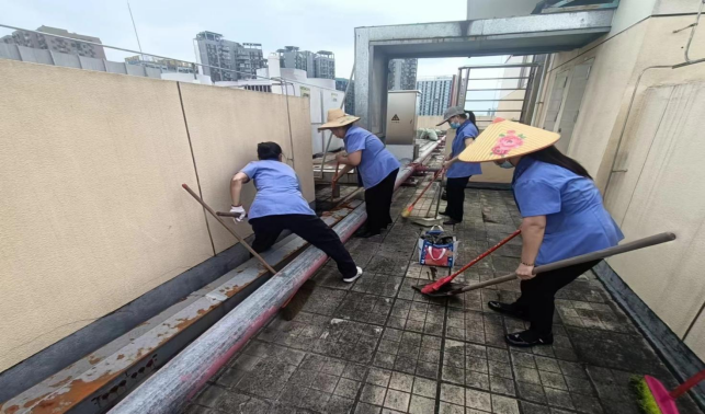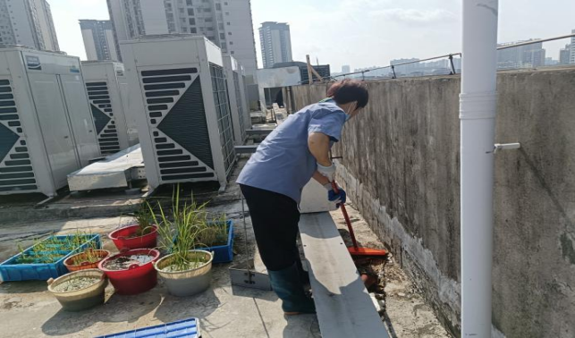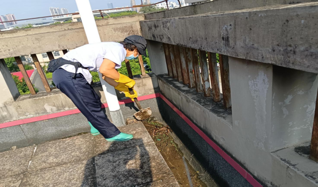 清理君武馆楼宇天台排水设施
