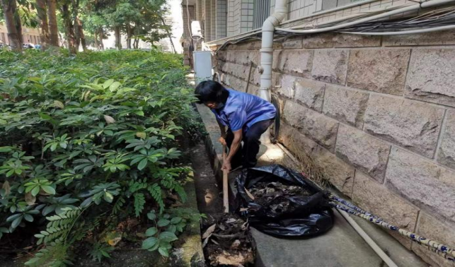 清理机械工程学院楼宇外围排水设施