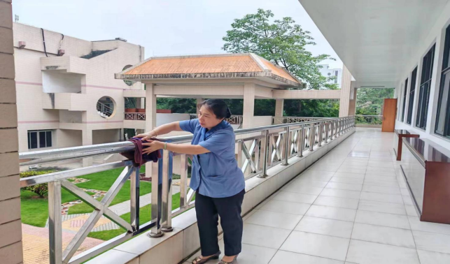 对语言中心、二教、三教、六教、十教、十一教、研究生院和行健学院教室等教学楼宇进行日常卫生保洁服务工作,本周清理公共楼宇外围排水设施65次,清理公共楼宇天台排水设施51处。