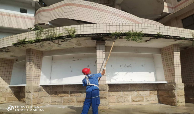 清除艺术学院楼宇天台寄生绿植
