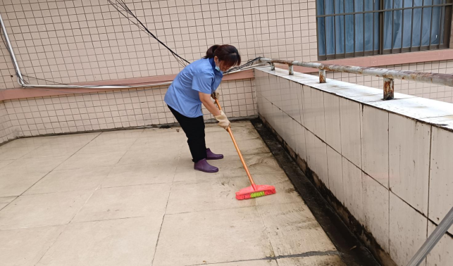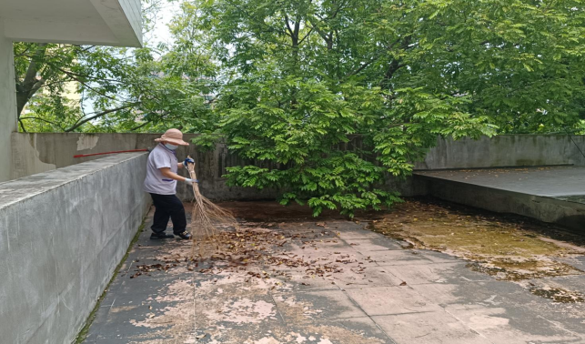 清理农学院楼宇天台排水设施