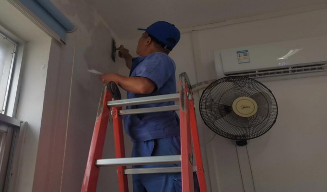 修补培佳园办公楼5楼办公室墙面