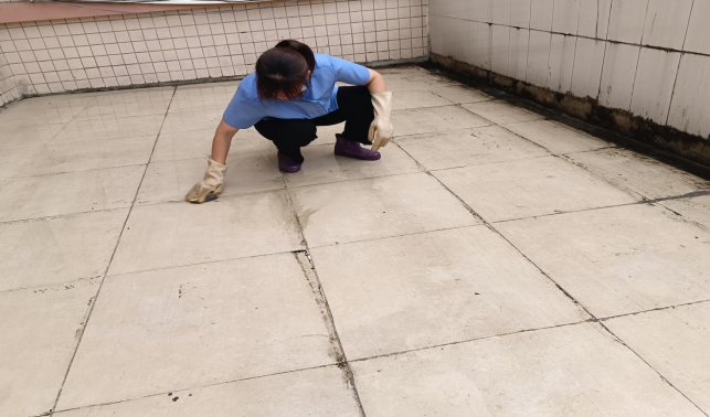 清洁艺术学院二楼露天阳台地面污渍