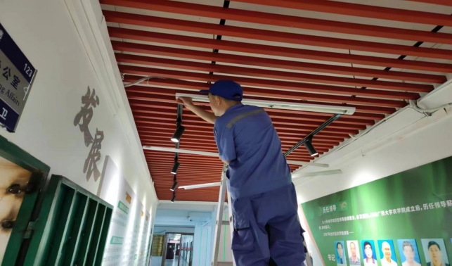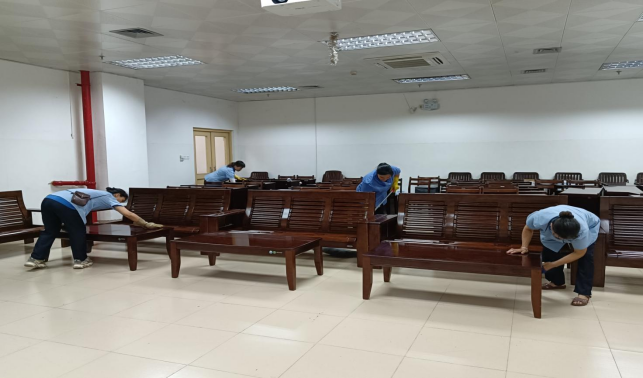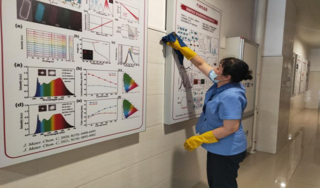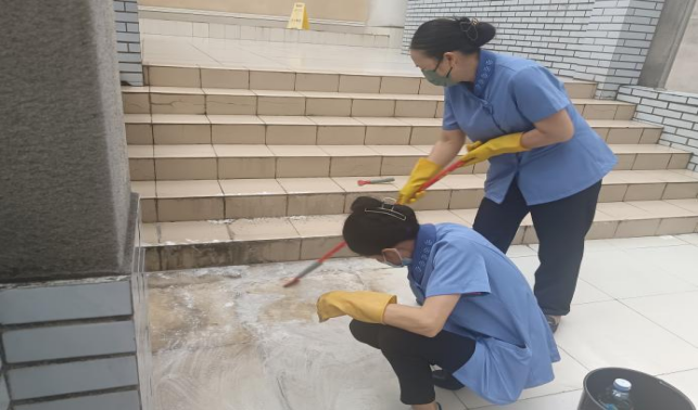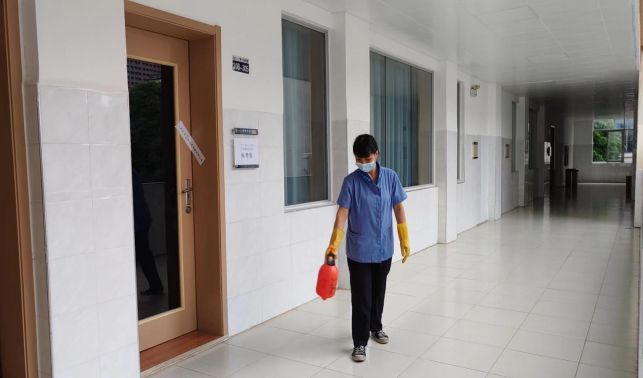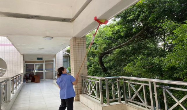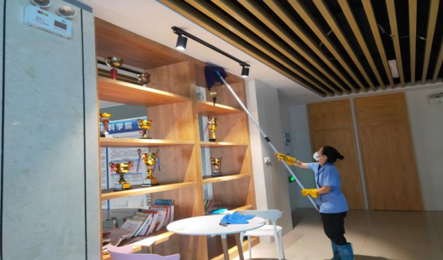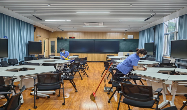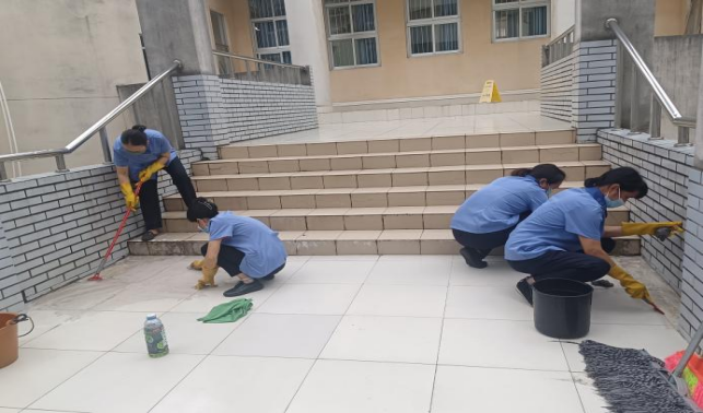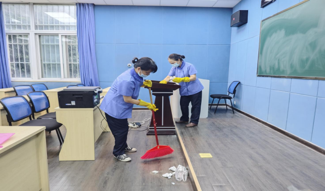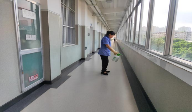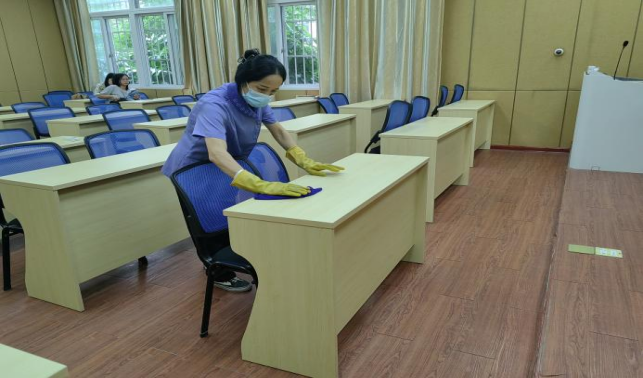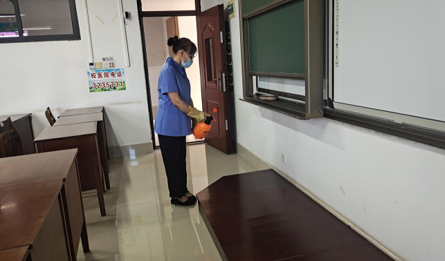 对公共教学楼宇的楼梯、走廊、门把手、课桌椅、电脑键盘、鼠标、水龙头、楼梯扶手、电梯间及按钮等高频接触表面进行重点杀菌消毒641次。