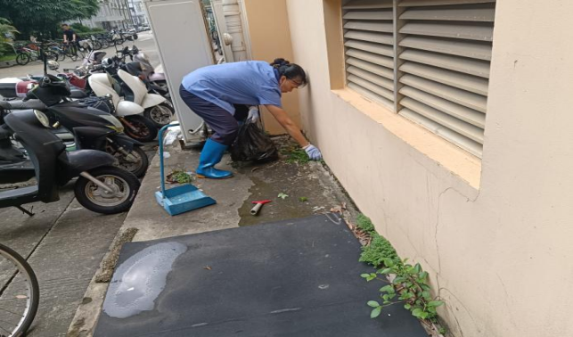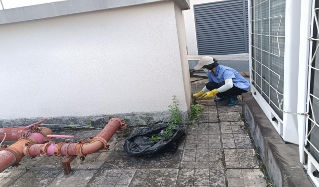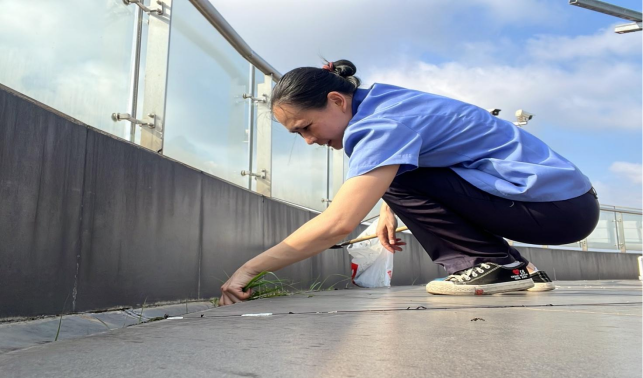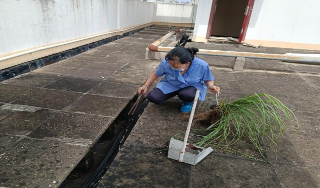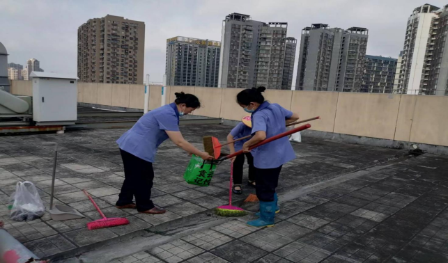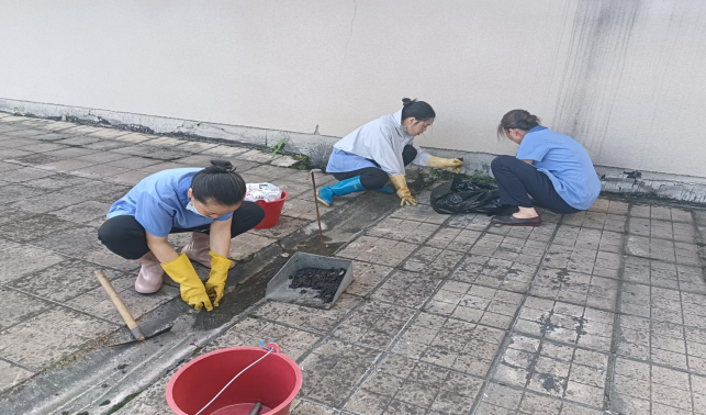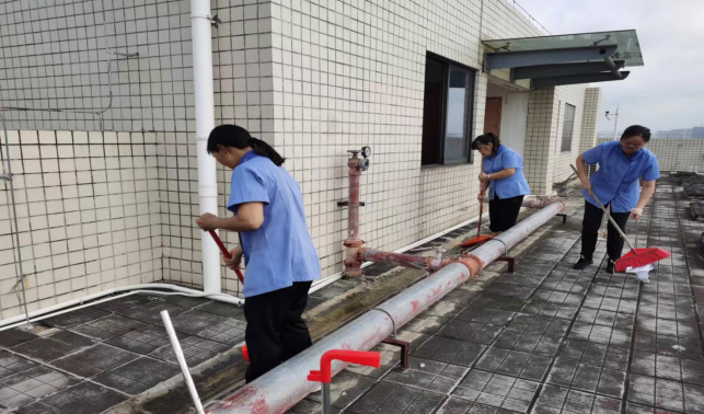 对语言中心、二教、三教、六教、十教、十一教、研究生院和行健学院教室等教学楼宇进行日常卫生保洁服务工作,本周清理公共楼宇外围排水设施65次,清理公共楼宇天台排水设施57处。