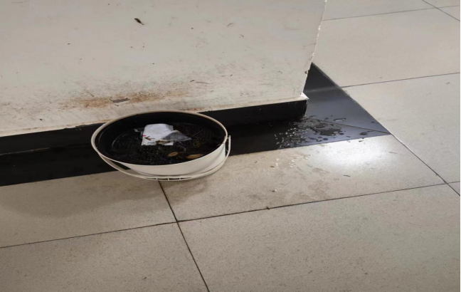 巡查发现茶桶里丢有垃圾,地板上有水渍