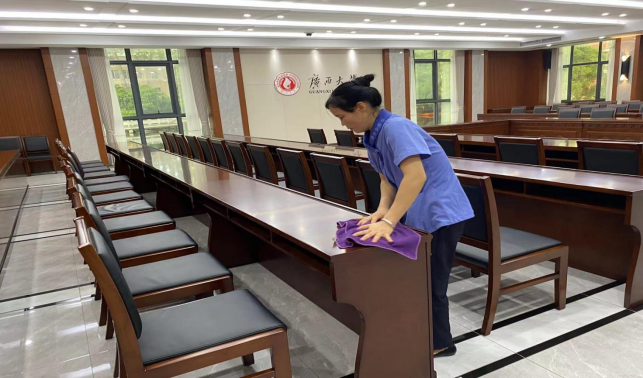 对君武馆、财务处、办公楼、大学生活动中心、保卫处等办公楼宇进行日常卫生保洁等服务工作。