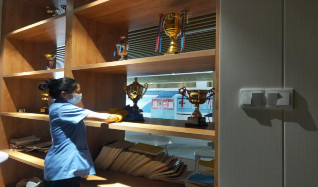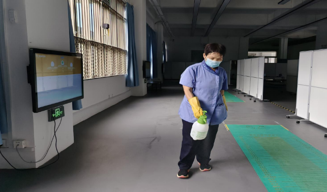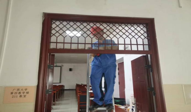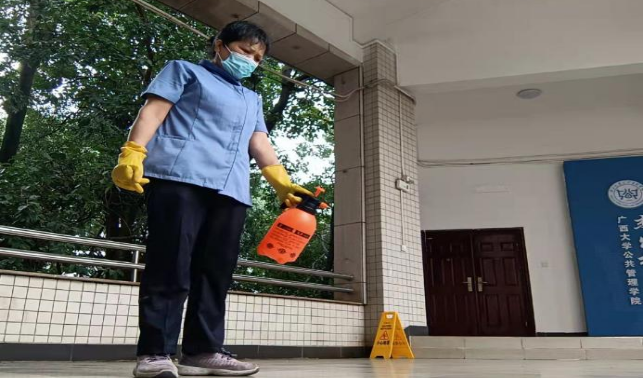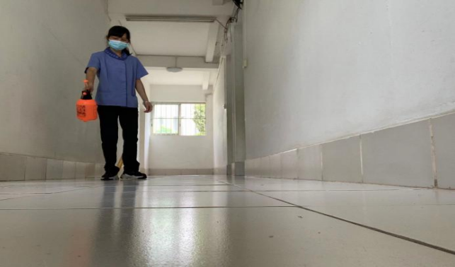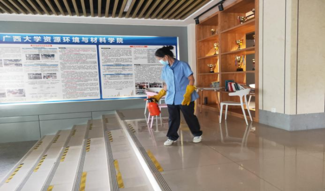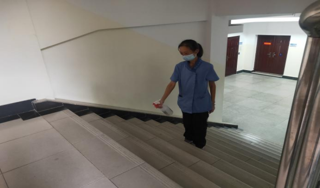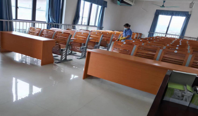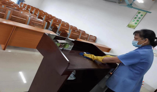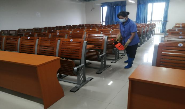 对公共教学楼宇的楼梯、走廊、门把手、课桌椅、电脑键盘、鼠标、水龙头、楼梯扶手、电梯间及按钮等高频接触表面进行重点杀菌消毒638次。