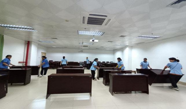 协助做好2024年上半年大学生入党积极分子统一考试各项后勤保障工作。检查调试考试供电、灯光、风扇(空调)等设备,做好教室的开放管理、保洁卫生、消杀等工作。