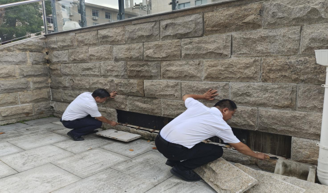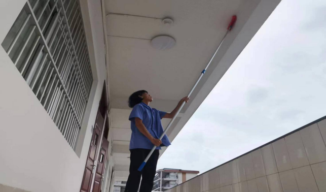 对语言中心、二教、三教、六教、十教、十一教、研究生院和行健学院教室等教学楼宇进行日常卫生保洁服务工作,本周清理公共楼宇外围排水设施50次,清理公共楼宇天台排水设施42处。