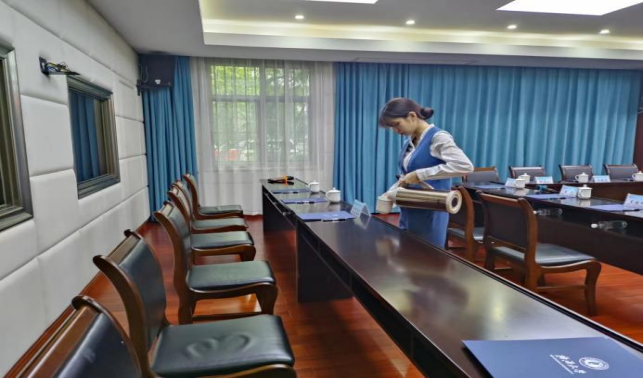 做好会场布置、会议前后保洁及会务各项服务共计23场,其中重要接待12场。