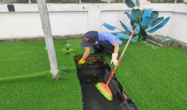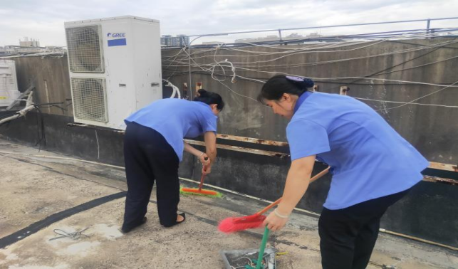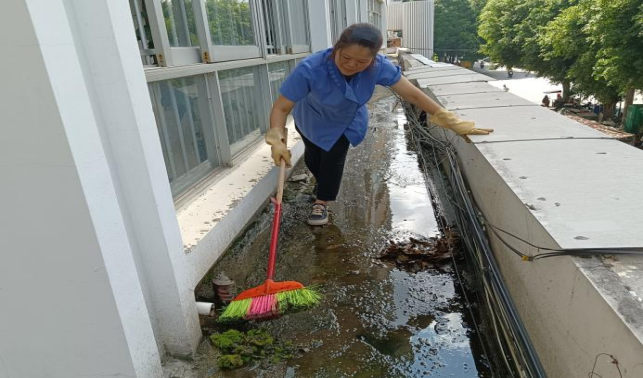 对语言中心、二教、三教、六教、十教、十一教、研究生院和行健学院教室等教学楼宇进行日常卫生保洁服务工作,本周清理公共楼宇外围排水设施51次,清理公共楼宇天台排水设施44处。