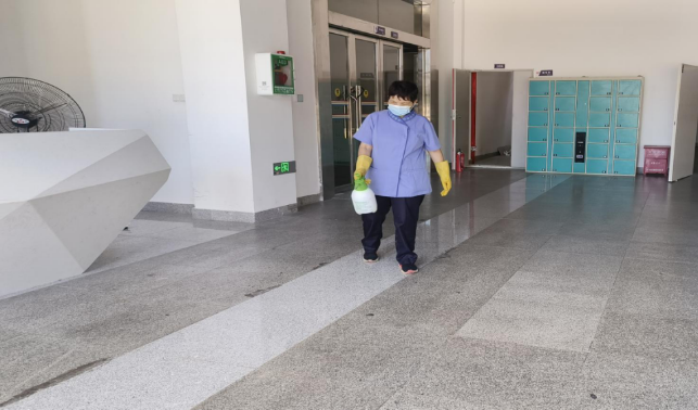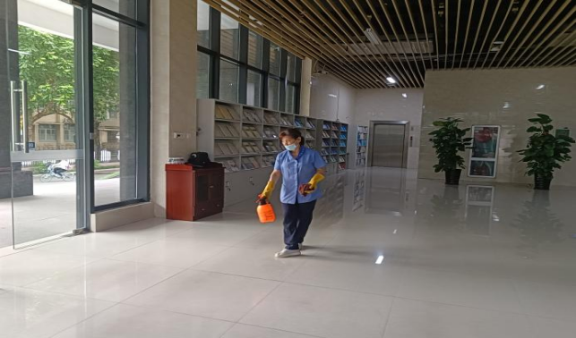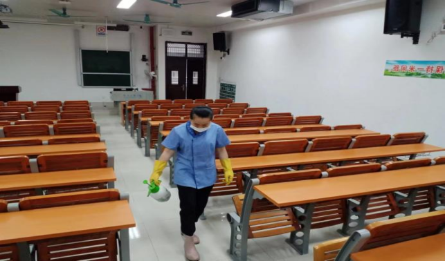 对公共教学楼宇的楼梯、走廊、门把手、课桌椅、电脑键盘、鼠标、水龙头、楼梯扶手、电梯间及按钮等高频接触表面进行重点杀菌消毒628次。