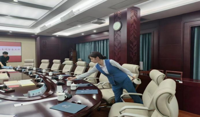 做好会场布置、会议前后保洁及会务各项服务共计45场,其中重要接待23场。
