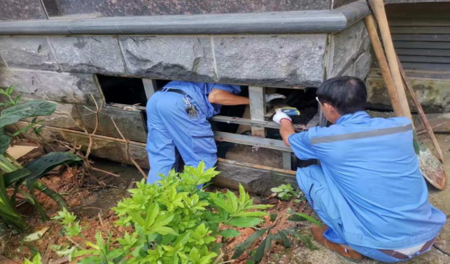 清理农学院楼宇外围排水设施