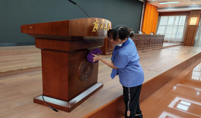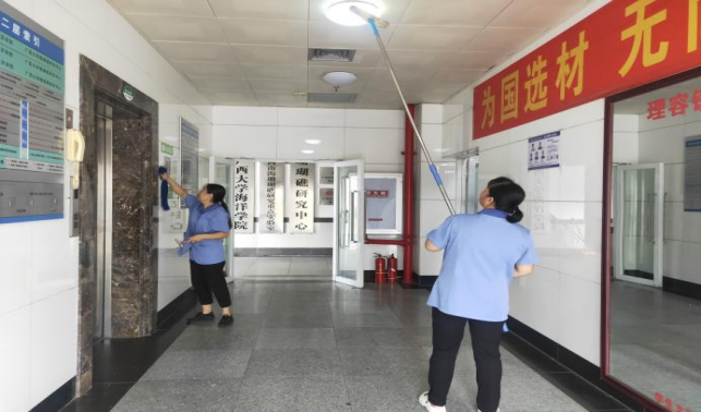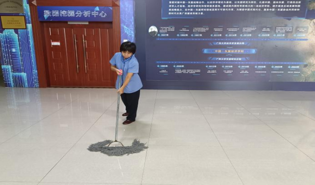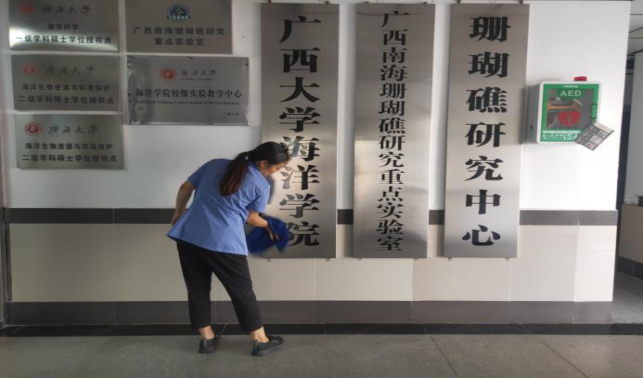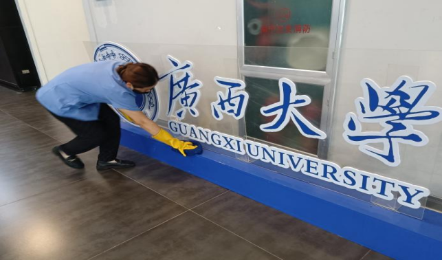 对中国-东盟经济学院、海洋学院、数学研究中心、医学院、农学院、轻工学院等26个学院进行日常卫生保洁工作。