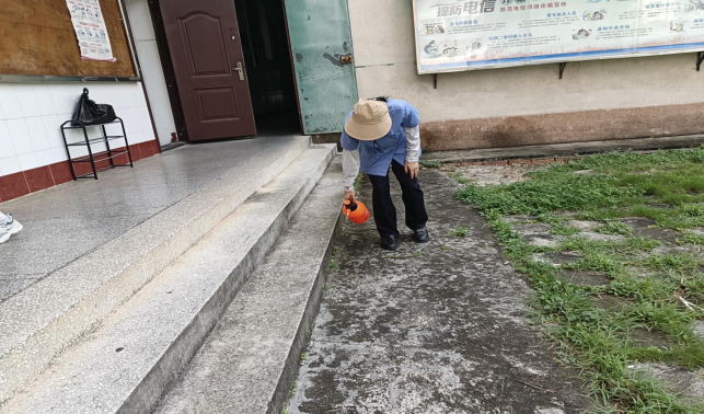 农学院楼栋外围喷洒除草剂