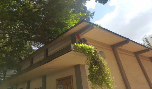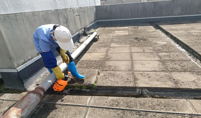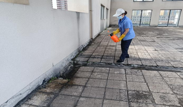 十教楼宇楼顶喷洒除草剂