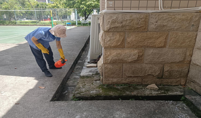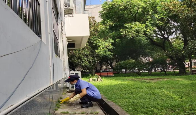 动科学院楼栋外围喷洒除草剂
