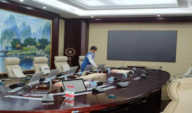 做好会场布置、会议前后保洁及会务各项服务共计39场,其中重要接待15场。