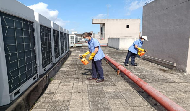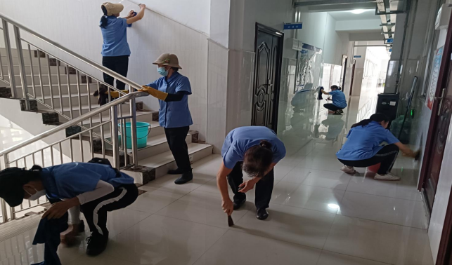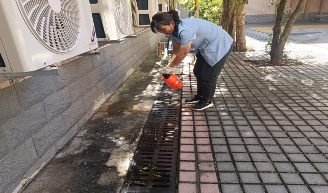对语言中心、二教、三教、六教、十教、十一教、十五教、十六教和研究生院共九栋教学楼宇进行日常卫生保洁服务工作。7月-8月清理公共楼宇排水设施326次,清理公共楼宇天台205栋。