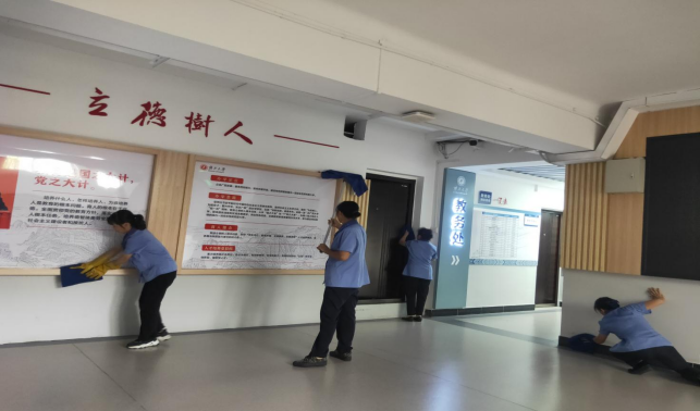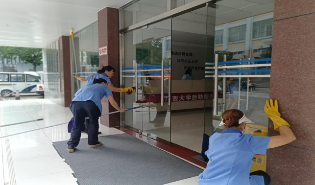 对校办楼、君武馆、新东园后勤基建处、财务处、办公楼、大学生活动中心、保卫处、北校园图书馆等办公楼宇进行日常卫生保洁等服务工作。