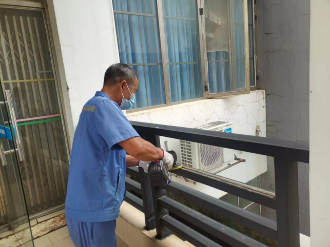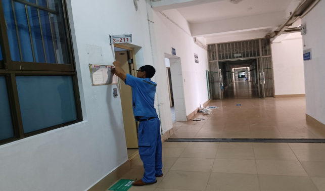对公共教学楼宇的楼梯、走廊、门把手、课桌椅、电脑键盘、鼠标、水龙头、楼梯扶手、电梯间及按钮等高频接触表面进行重点杀菌消毒3862次。
