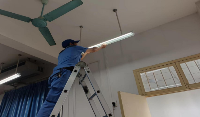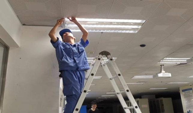 更换综合楼一楼实验室照明灯