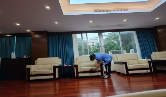 对君武馆、财务处、办公楼、大学生活动中心、保卫处等办公楼宇进行日常卫生保洁等服务工作。