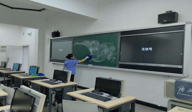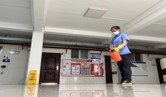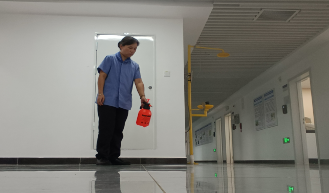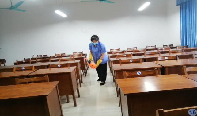 对公共教学楼宇的楼梯、走廊、门把手、课桌椅、电脑键盘、鼠标、水龙头、楼梯扶手、电梯间及按钮等高频接触表面进行重点杀菌消毒553次。