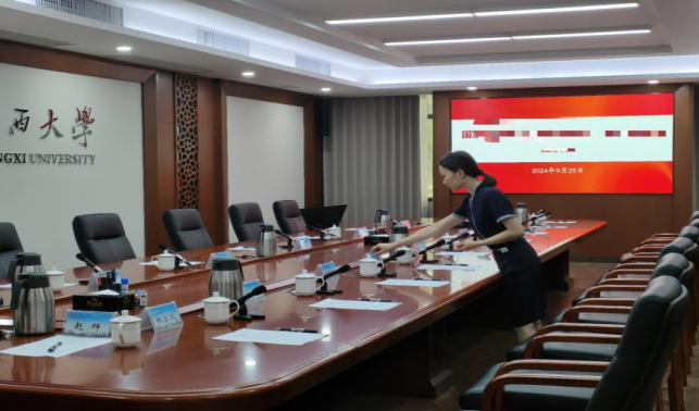 做好会场布置、会议前后保洁及会务各项服务共计13场,其中重要接待6场。