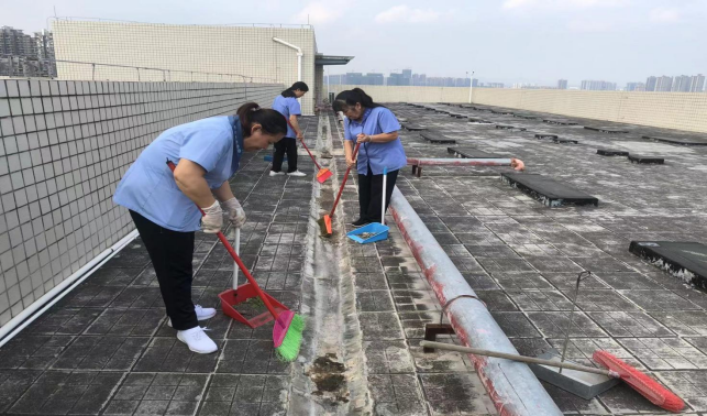 综合实验大楼楼宇天台排水设施清理