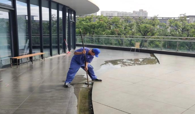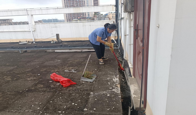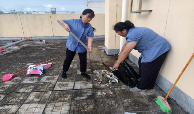 对语言中心、二教、三教、六教、十教、十一教、十五教、十六教和研究生院教室等教学楼宇进行日常卫生保洁服务工作,本周清理公共楼宇外围排水设施50次,清理公共楼宇天台排水设施44处。