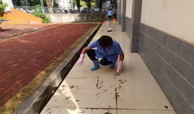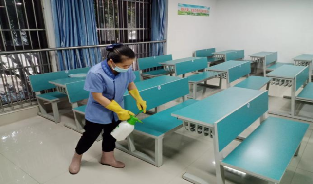 对公共教学楼宇的楼梯、走廊、门把手、课桌椅、电脑键盘、鼠标、水龙头、楼梯扶手、电梯间及按钮等高频接触表面进行重点杀菌消毒485次。