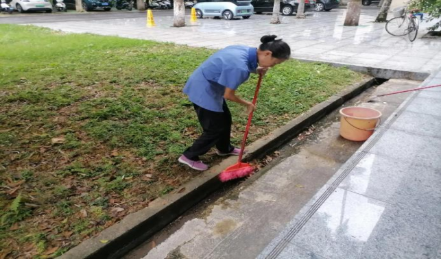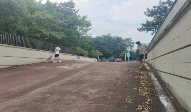 数信学院疏通大门平台积水