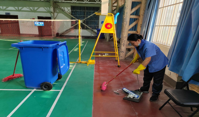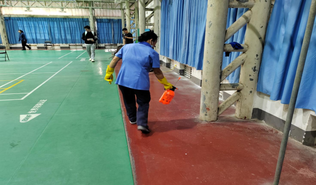 beats365亚洲版第54届运动会羽毛球比赛现场环境卫生清洁和消毒保障工作