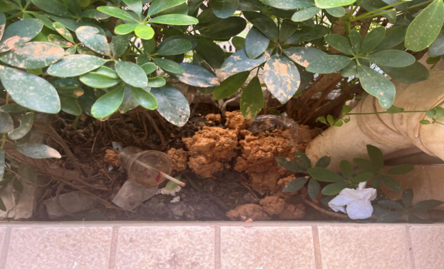 巡查发现花圃有垃圾