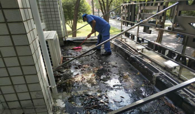 医学院办公楼楼宇外围排水设施清理