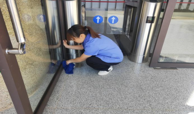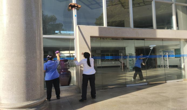 校办大门玻璃大清洁