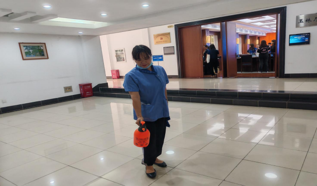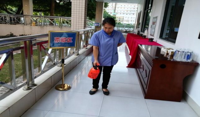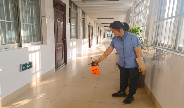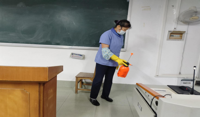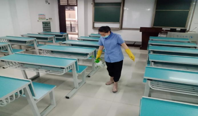 对公共教学楼宇的楼梯、走廊、门把手、课桌椅、电脑键盘、鼠标、水龙头、楼梯扶手、电梯间及按钮等高频接触表面进行重点杀菌消毒578次。