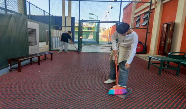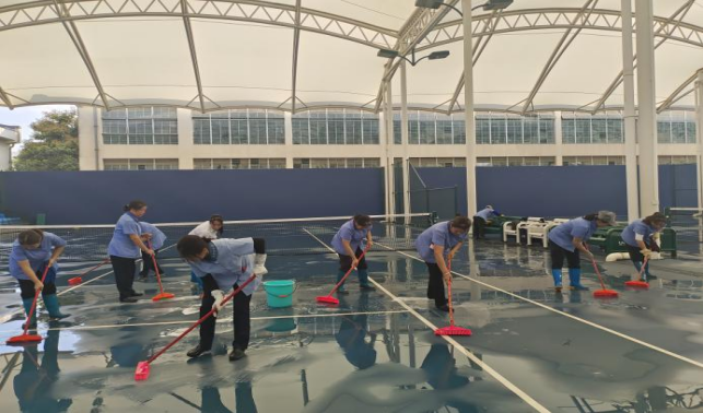 二、做好第十六届“建行杯”银校网球邀请赛网球中心比赛场所大清洁。