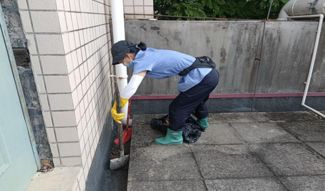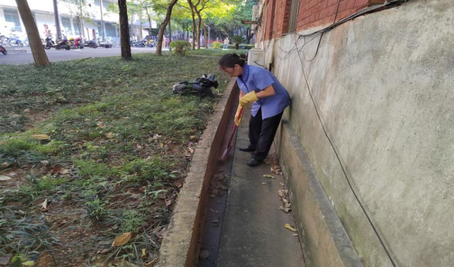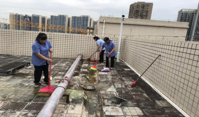 对语言中心、二教、三教、六教、十教、十一教、十五教、十六教和研究生院教室等教学楼宇进行日常卫生保洁服务工作,本周清理公共楼宇外围排水设施48次,清理公共楼宇天台排水设施42处。