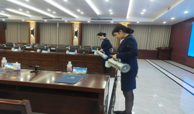 做好会场布置、会议前后保洁及会务各项服务共计37场,其中重要接待14场。