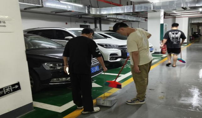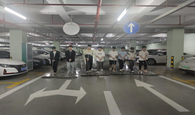 大学生在南大门地下停车场开展劳动教育实践课